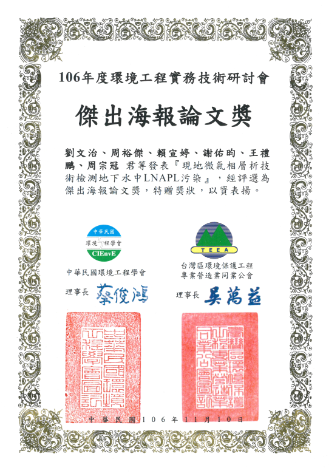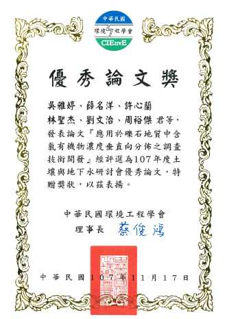 Outstanding Thesis Award presented by the Chinese Institute of Environmental Engineering
