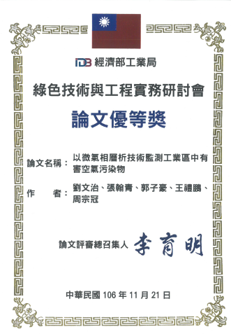Outstanding Thesis Award presented by the Industrial Development Bureau, MoEA at the Green Technology & Practical Applications Seminar